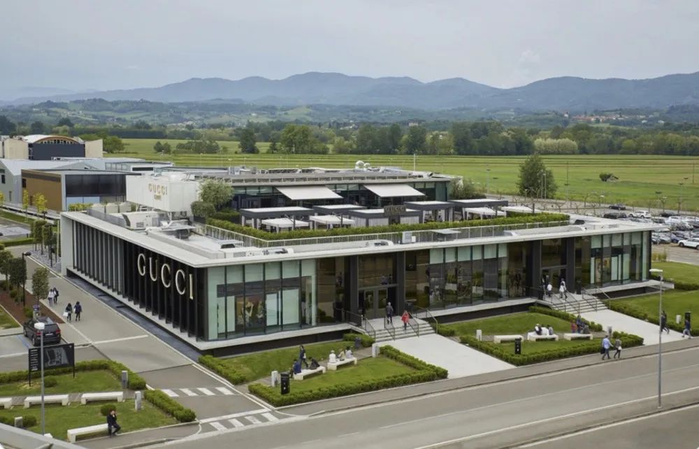 位于The Mall Firenze的超大Gucci門店,二層露臺(tái)上是Gucci Cafe