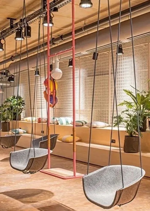 空間以明亮的粉彩和摩登風(fēng)格將顧客帶入加利福尼亞的風(fēng)情世界,還通過一系列不同尋常的材料組合,為顧客提供不一樣觸覺、視覺體驗(yàn)的潮酷餐飲空間。顧客可以選擇坐在落地窗前邊品嘗美食,邊欣賞對(duì)面動(dòng)物園的猴山;也可以選擇以鳥籠為靈感設(shè)計(jì)的沙發(fā)區(qū),或是以階梯座的秋千林立的休閑區(qū)等。