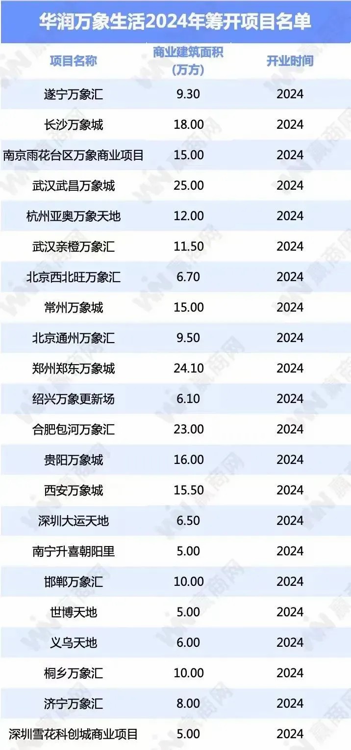 2023年華潤萬象生活以“萬象”系列為核心,在全國范圍內(nèi)迅速拓展其商業(yè)帝國,成功開設13座全新購物中心。展望今年,華潤再啟新程,計劃推出22個引人注目的新項目,持續(xù)加速商業(yè)版圖的擴張步伐。